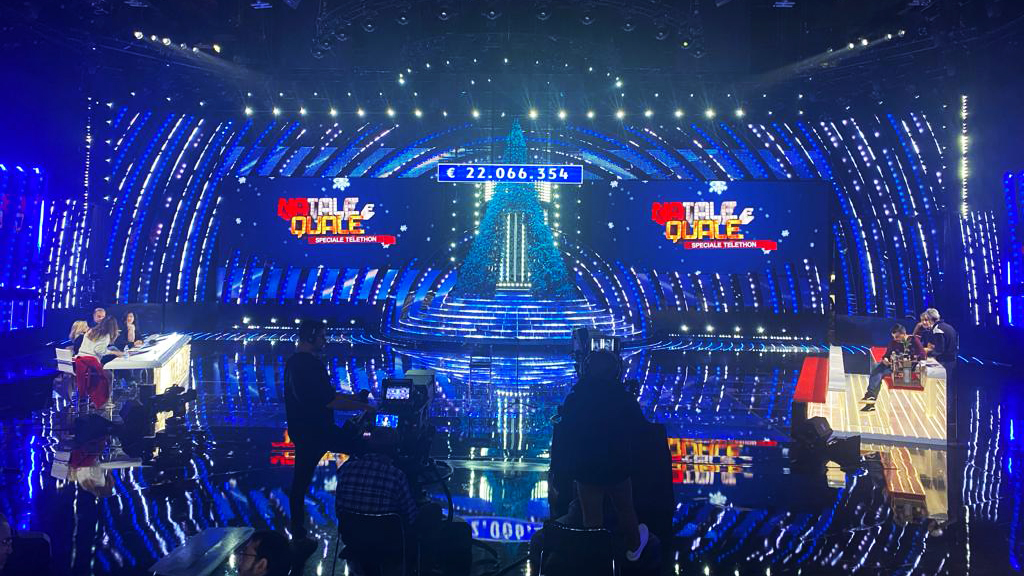 La fornitura di mq. 100,00 di passo 3.9, mq. 30,00 di passo 2.6 curvabile e mq. 50,00 di ledwall trasparent, e in aggiunta l’installazione della regia grafica per la gestione dei contributi e di tutti gli apparati video.